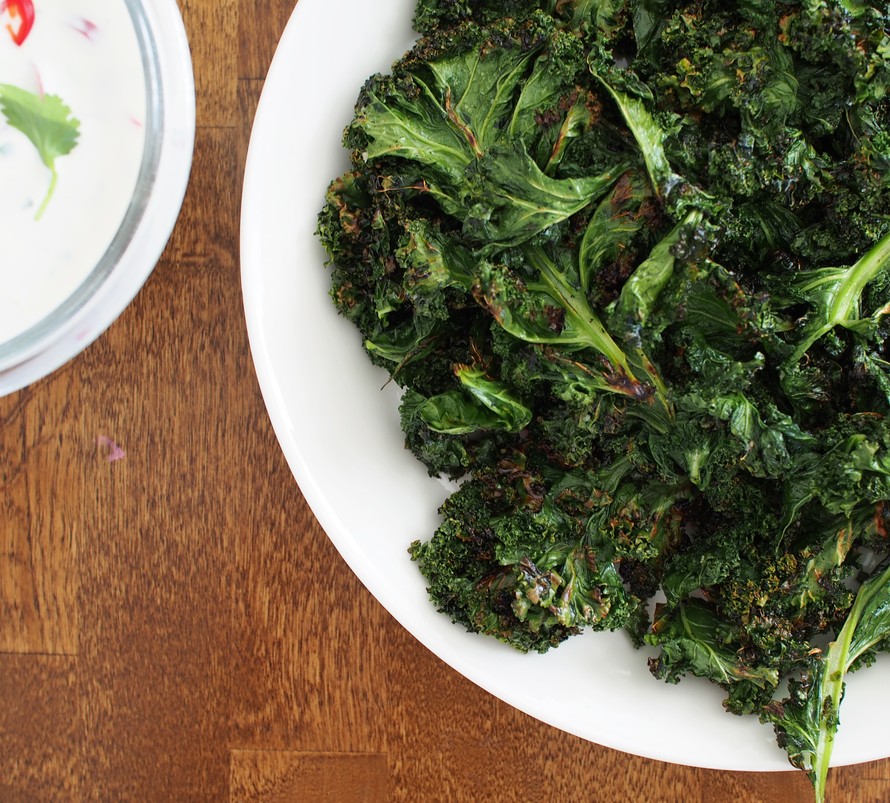 Grillattua lehtikaalia ja chili-inkivääridippi