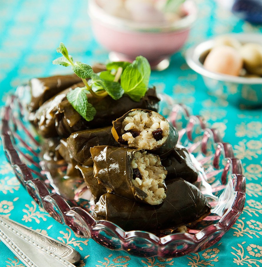 Sitruuna raikastaa öljyiset viininlehtikääryleet.