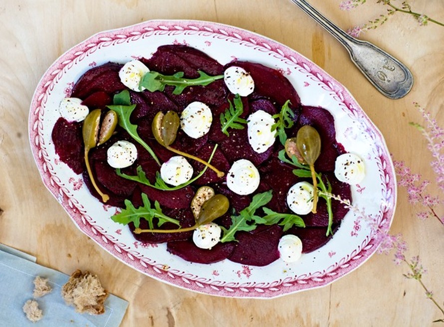 - Viimeistele pinta rucolanlehdillä tai ketunleivällä, kapriksilla ja pirskoittelemalla pintaan oliiviöljyä ja omenaviinietikkaa tai balsamicoa. Nauti alkuruokana.