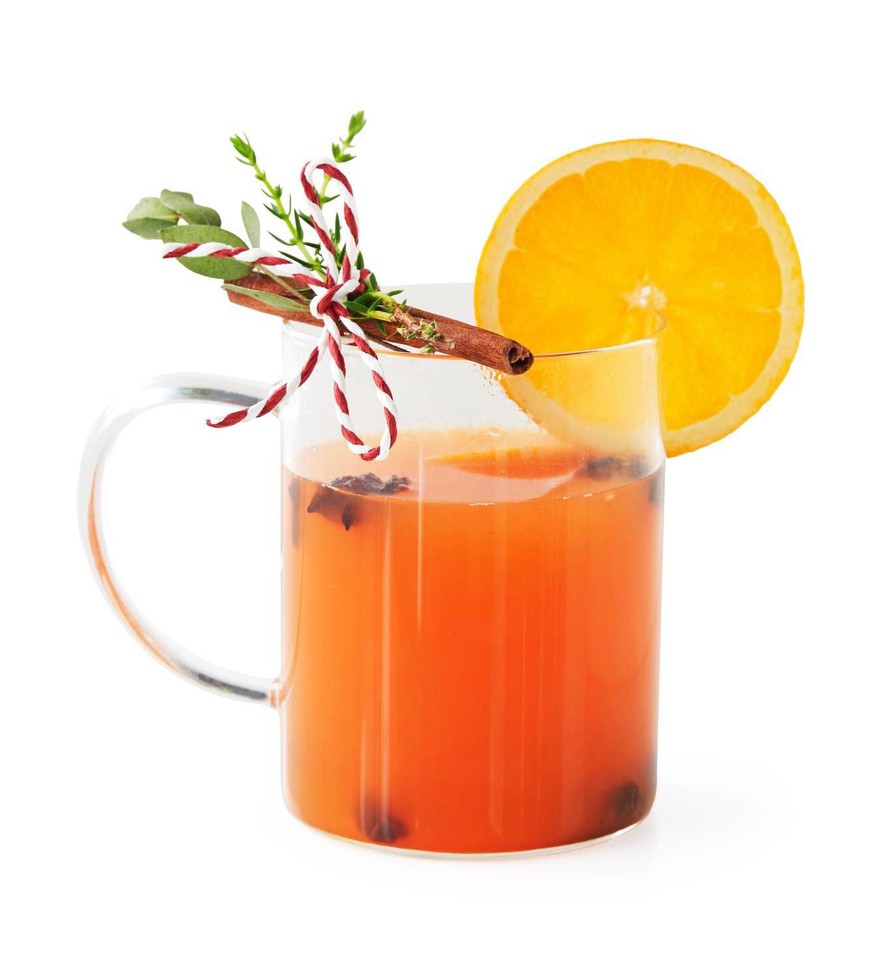 - Lisää valkoviini ja Aperol maustuneeseen mehuun ja lämmitä seos höyryävän kuumaksi. Siivilöi kuuma juoma laseihin. Koristele appelsiinilla.