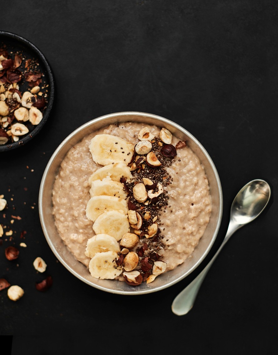 Pehmeän pähkinäisen maun salaisuus on hasselpähkinäjuoma, jossa puurohiutaleet keitetään. Se antaa puurolle makeutta ja jopa hieman nutellamaisen maun. Valmiin puuron joukkoon sekoitetaan soseutettu banaani ja päälle ripotellaan paahdettuja pähkinöitä.