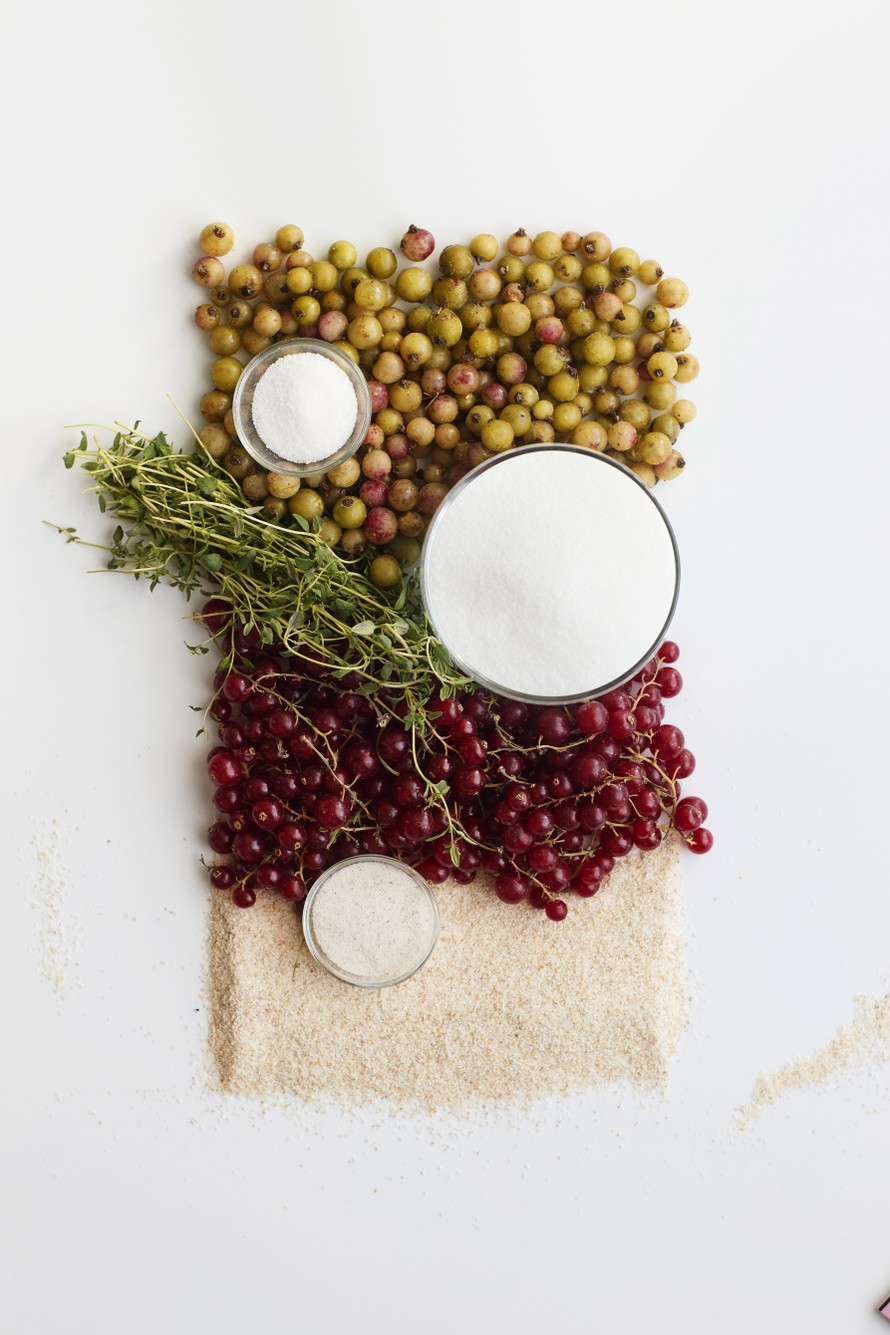 Tuore timjami maustaa herukkavispipuuron, jossa on punaisia sekä vihreitä tai mustia herukoita.
