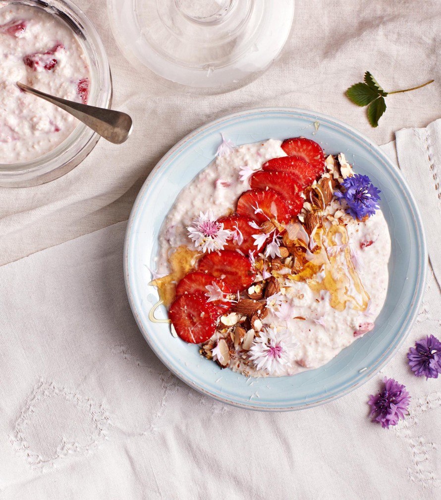 Kesäinen tuorepuuro on ihanan helppo napata aamulla jääkaapista lautaselle.