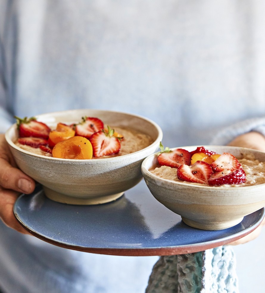 Muutama lusikallinen maapähkinävoita tekee puurolle ihmeitä. Kun liotat hiutaleet yön yli, samettinen puuro on taattu.