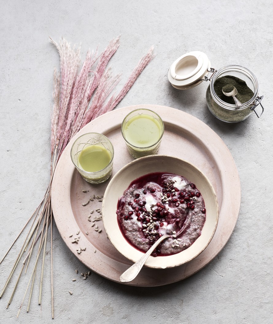 Vinkki! Kuvassa näkyvän omena-basilika-inkiväärijuoman ohjeen löydät puuroreseptin alta.