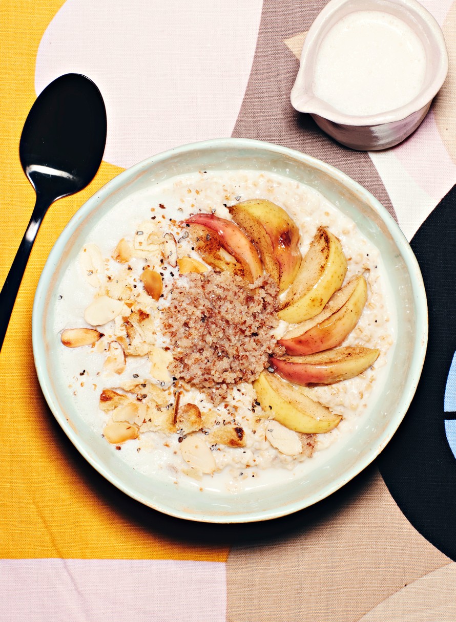 Mantelimassaa, kardemummalla maustettua kaurapuuroa ja pehmeää omenaa. Mitä muuta voi aamupalalta toivoa?