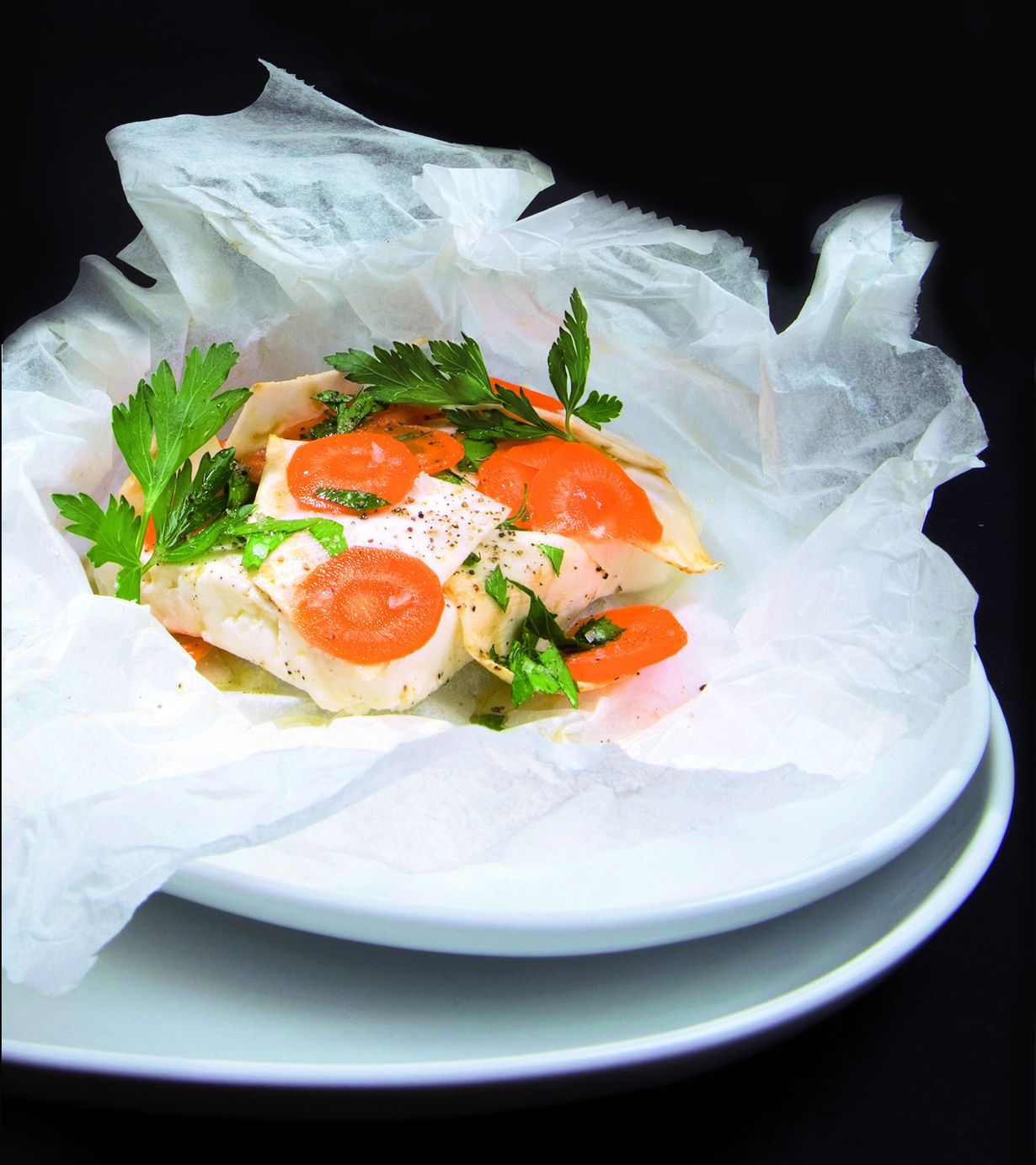 Kuori porkkanat ja selleri. Leikkaa ne ohuiksi siivuiksi. Laita vihannekset kattilaan ja lisää valkoviini, korianterin lehdet ja oliiviöljy. Keitä keskilämmöllä noin 5 minuuttia ja anna vihannesten jäähtyä marinadissaan. Hienonna ruohosipuli ja lisää se marinadiin.