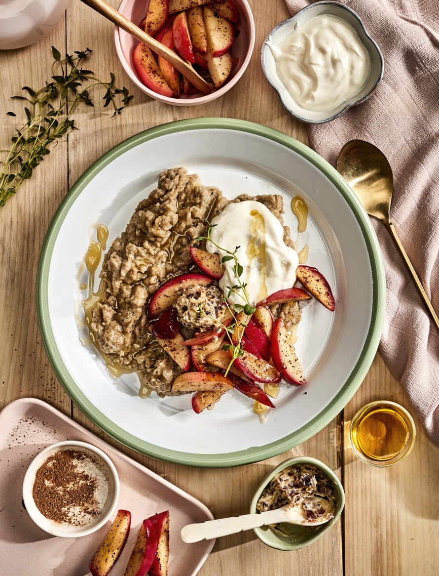 - Tarjoa puuro matalalta lautaselta omenoiden, taatelivoin, jogurtin ja hunajan kanssa.