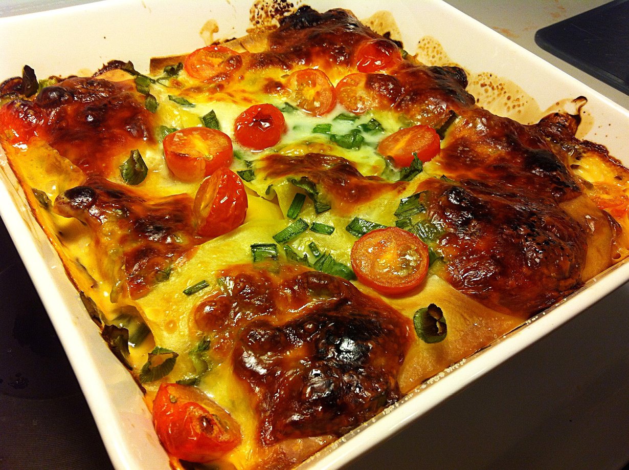 Herkullinen kanalasagne savujuustolla ja paprikalla höystettynä