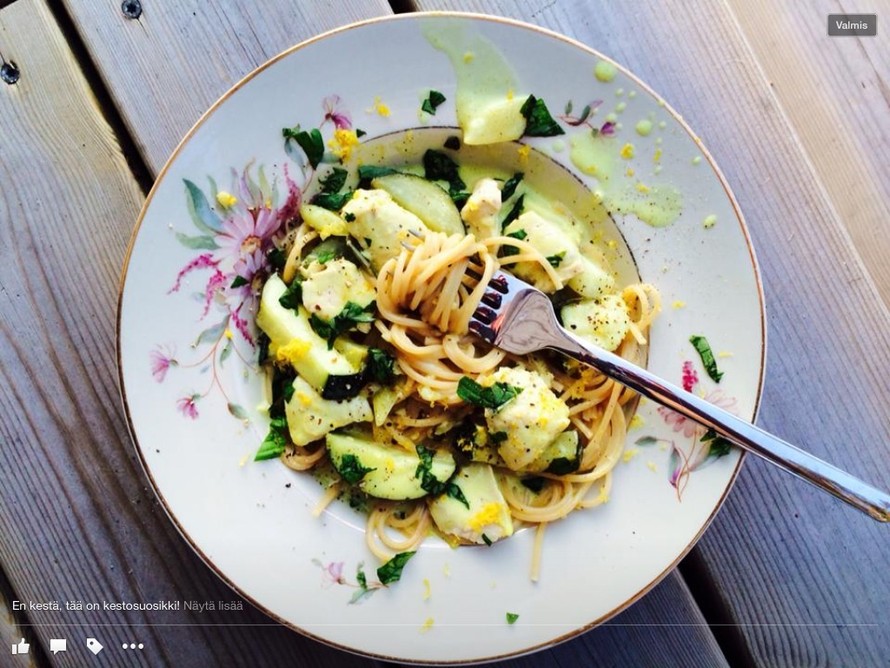 Lähes samaa ruokaa olen syönyt Helsingissä 90-luvulla juuri uudelleen avatussa legendaarisessa Motti-ravintolassa. Pistin maut mieleen ja sen jälkeen sitruunakanapasta on ollut meidän perheen top 5 ruoka.