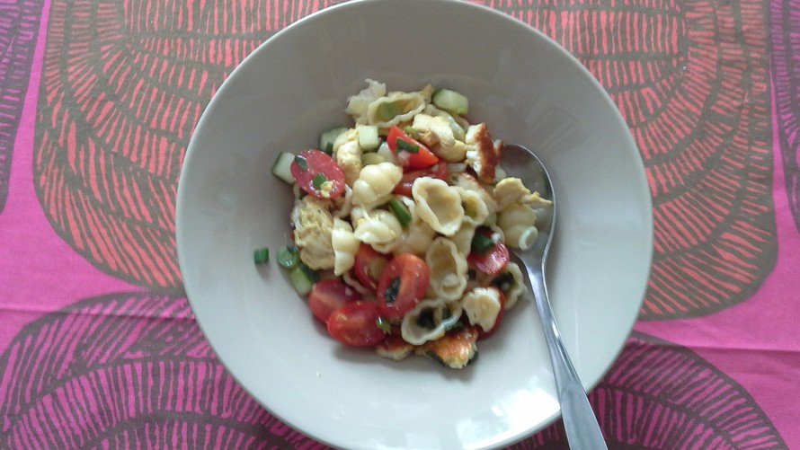 Tämä pastasalaatti on aivan ihana ja sitä voi muokkailla oman maun mukaan. Tärkein ainesosa mielestäni on sitruuna. Sitä ei voi olla tarpeeksi.