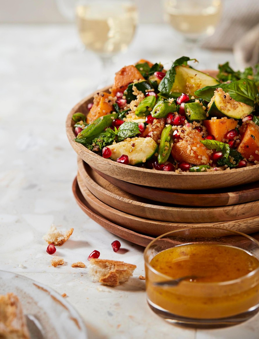 Marokkolainen kvinoa-kurpitsasalaatti
