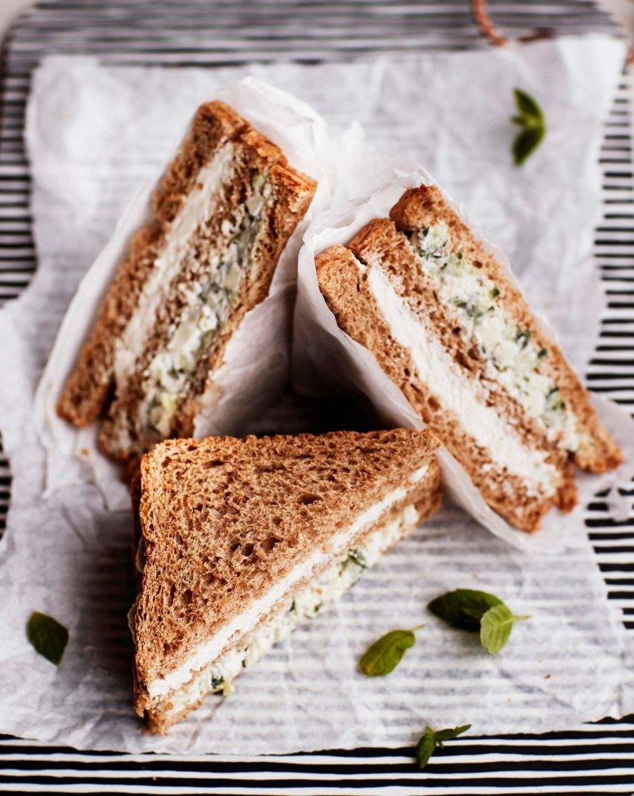 Tässä kolmioleipäreseptissä kerrosten väliin kasataan mehevää tsatsikia ja fetatäytettä. Kukkakaalimurut antavat tsatsikiin hauskan rapeaa rakennetta. Neljän aineksen fetatäyte on puolestaan sekoittamalla valmis.