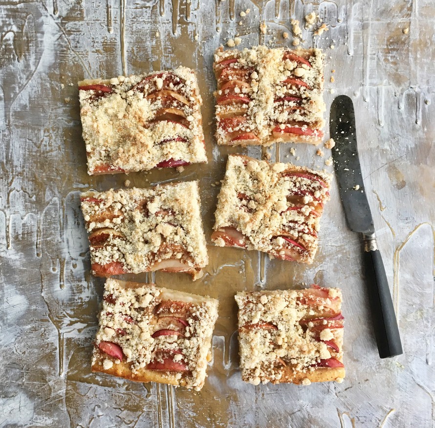 Sekoittamalla valmis! Mummolasta tuttu omenapeltipiirakka onnistuu myös vegaanisena. Kaiken kruunaa rapea murukerros.