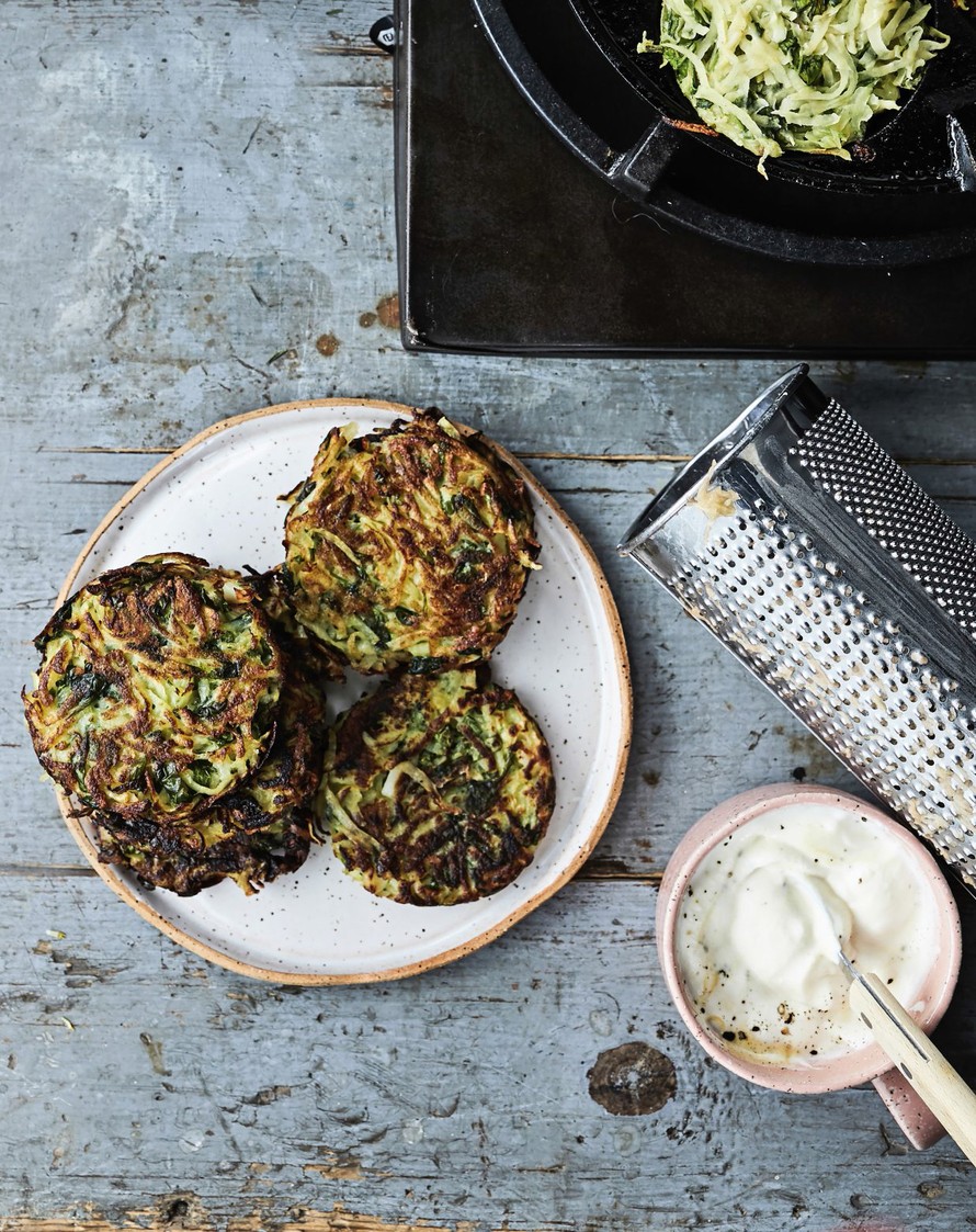 Perunasta ja juustosta paistetaan rapeat kasvispihvit. Ruoka on sekä halpa että herkullinen.