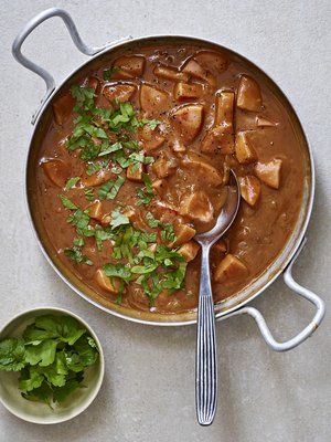 - Sekoita joukkoon hienonnettu valkosipuli, raastettu inkivääri ja silputut kevätsipulin varret. Mausta suolalla.