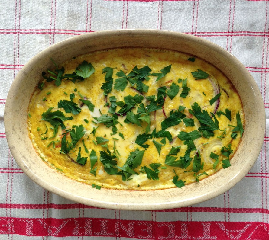 Mehevä uunimunakas valmistuu alle puolessa tunnissa. Runsas maitomäärä tekee munakkaasta pehmeän, jolloin se muistuttaa vähän suolaista piirakkaa ilman taikinaa. Maistuu myös kylmänä!