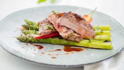 Kolassa kypsennetty porsaan kylki ja tumma salviakastike