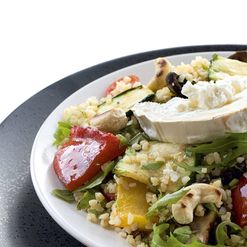 Ruokaisa vuohenjuusto-bulgursalaatti