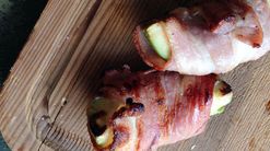 Pekoniin käärityt avokadolohkot