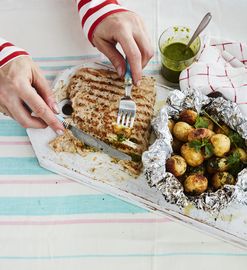 Kalkkunan lehtipihvit ja grilliperunat