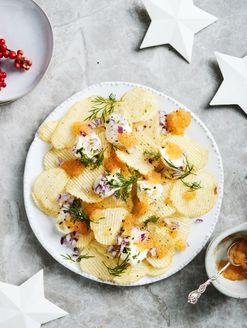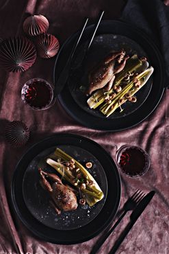Höyrytetyt purjot ja hasselpähkinä-voivinegretti