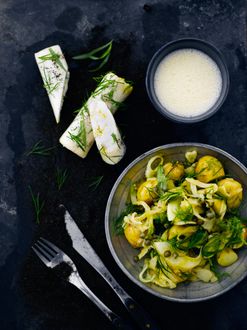 Artsikkopastaa, marinoitua kesäkurpitsaa ja savulohta