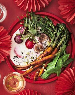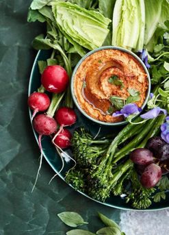 Paahdetut kesäkasvikset ja vuohenjuustodippi