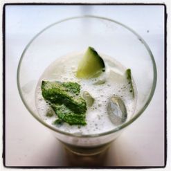 Savustettuja katkarapuja, chilejä ja limettiaiolia