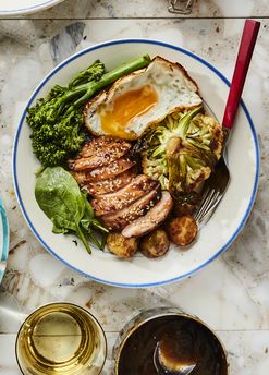Paahdettu kana-kasvissalaatti, seesamifetaa ja harissavinegretti