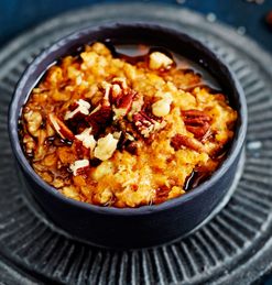 Kikherneillä ja karpaloilla täytetty myskikurpitsa