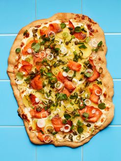 Ponzu-sitrussoijakastikeella maustettu kylmäsavulohipasta