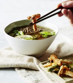Kantarellitempura ja sobanuudelit