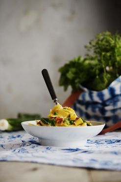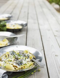 Korvasieniä, vuohenjuustoa ja nauhapastaa