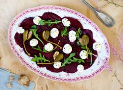 Punajuuricarpaccio vuohenjuustovaahdon kera