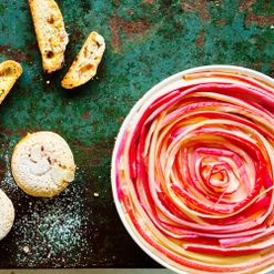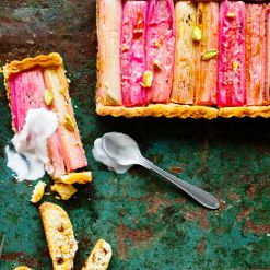 Appelsiinilla terästetty raparperi-vadelmapiirakka