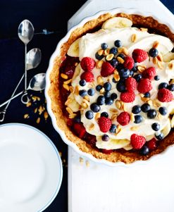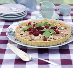 Appelsiinilla terästetty raparperi-vadelmapiirakka