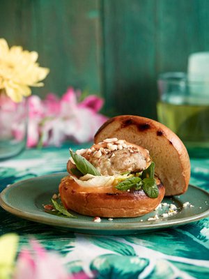 - Tarjoa nyhtöbroileri, minttukurkut ja inkiväärimajoneesi sämpylöiden välissä.