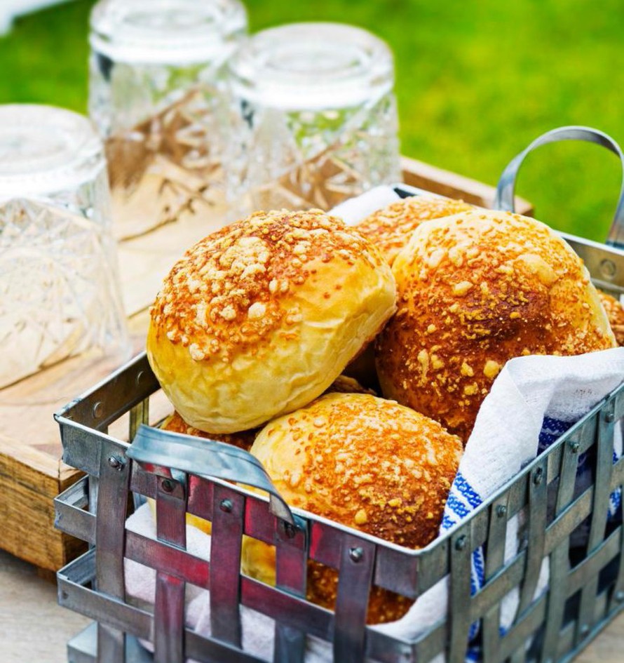 - Paista sämpylöitä 225-asteisessa uunissa 10–12 minuuttia, kunnes ne ovat kullanruskeita ja kypsiä. Anna sämpylöiden jäähtyä.