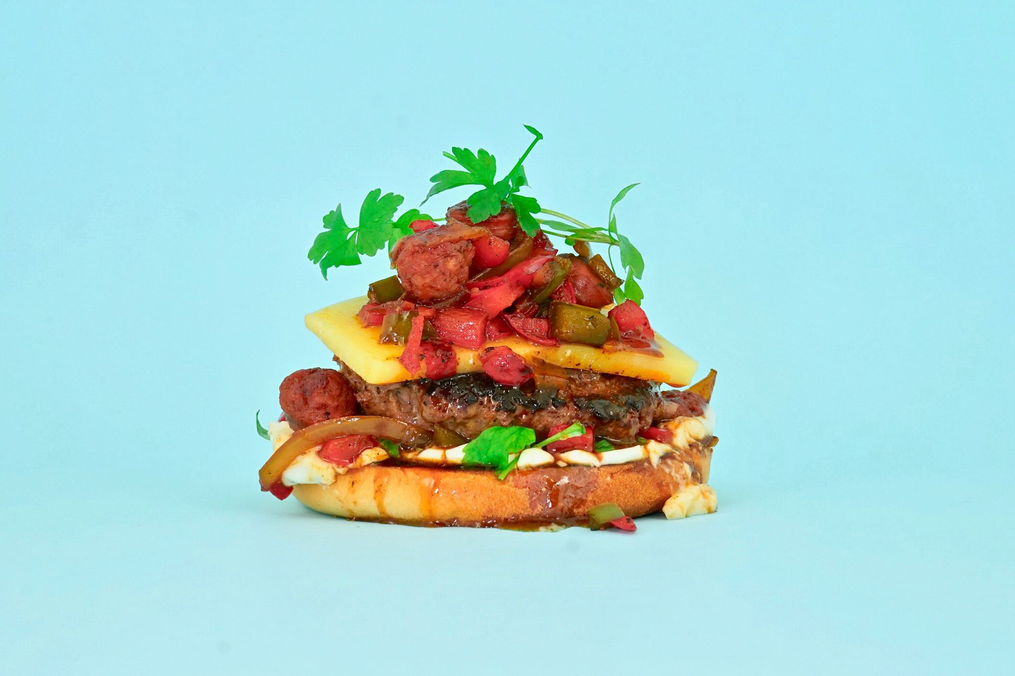 Makkaraa burgeriin! Näihin Baskiburgereihin ei laiteta sämpylän toista puolta hatuksi.