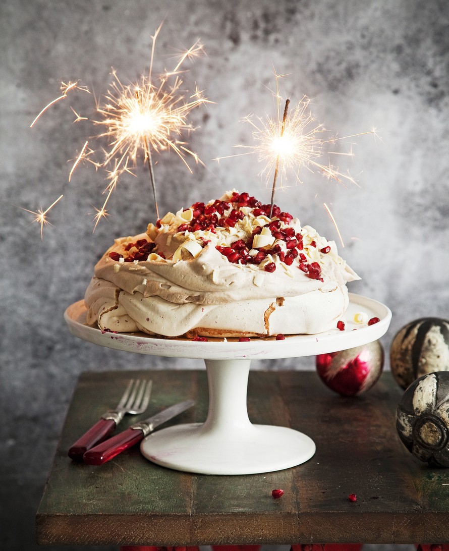 Granaattiomena-valkosuklaapavlova