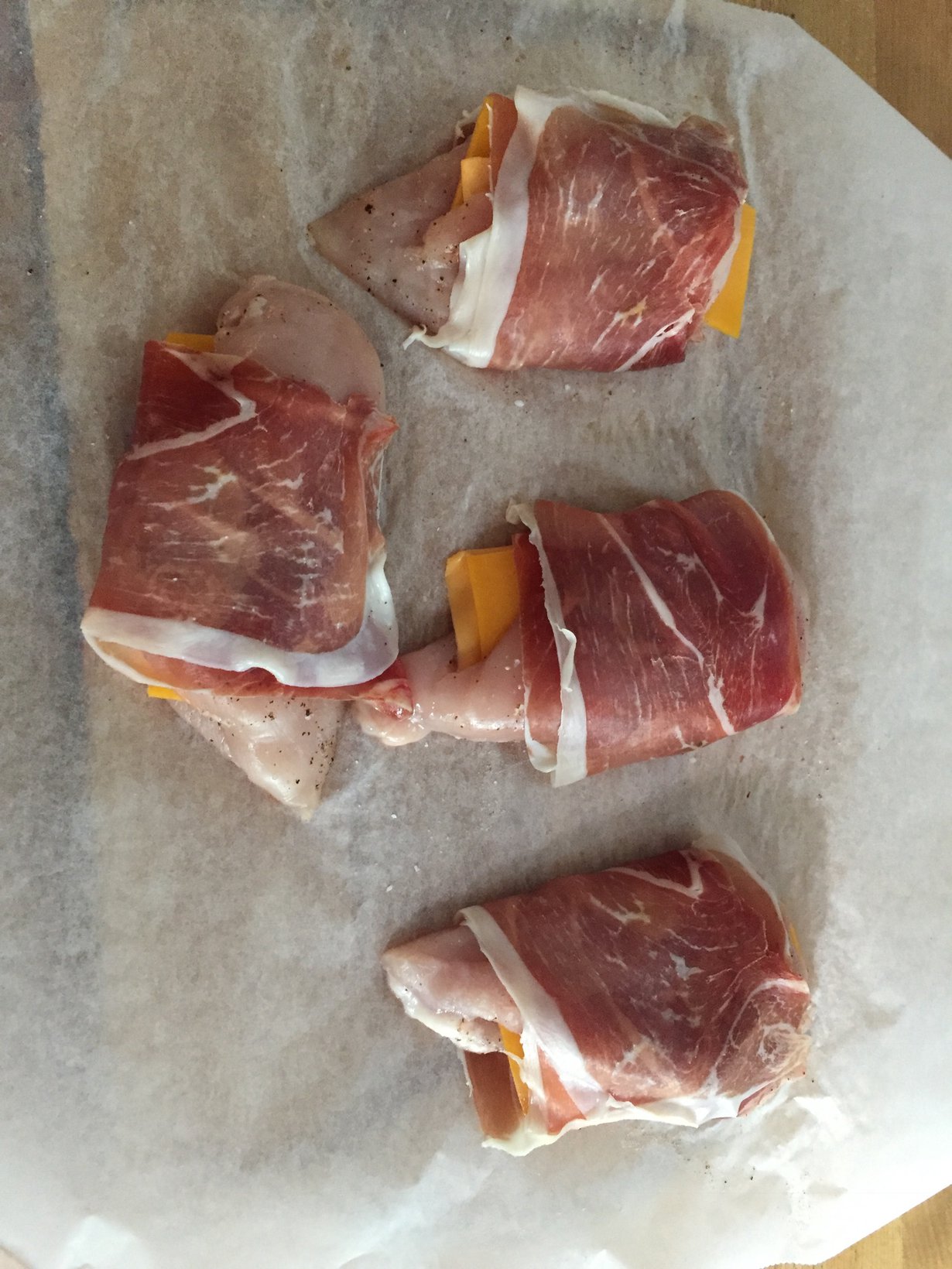 Kiedo pihvin ympärille siivu ilmakuivattua kinkkua