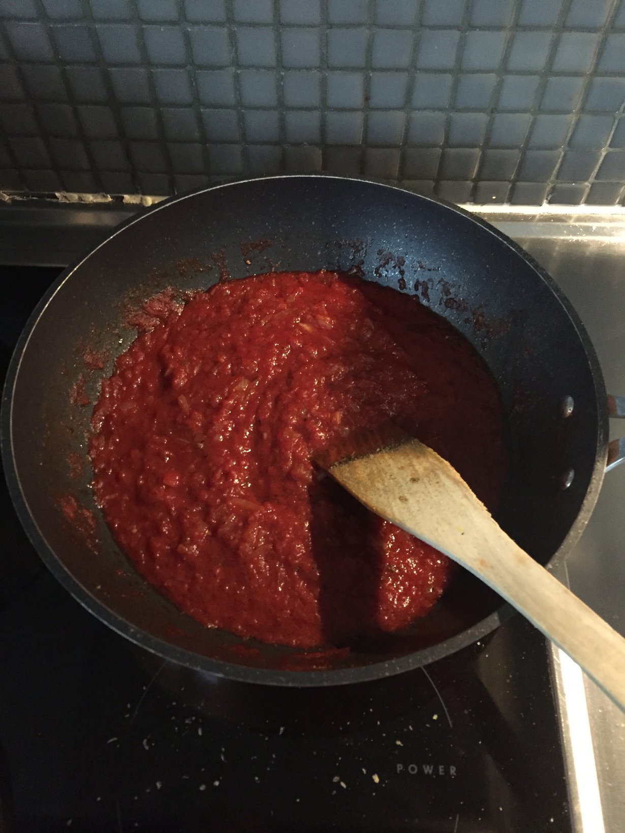 4. Lisää tomaattipyree, ruokosokeri ja etikka