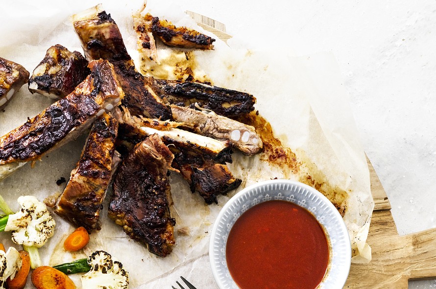 - Grillaa ribsit kuumassa grillissä, noin 10 minuuttia. Leikkaa ribsit annospaloiksi terävällä veitsellä luiden välistä.
