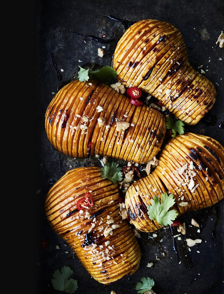- Nosta kurpitsat uunista ja sudi kastiketta niiden päälle. Nosta kurpitsat takaisin uuniin 20 minuutiksi ja sudi maustekastiketta niihin vielä muutaman kerran.