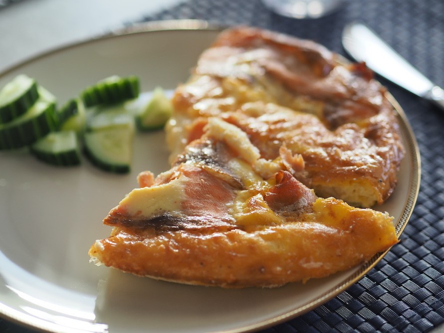 Uunimunakas on todella kuohkea, paljon ilmavampi kuin pannulla paistettu versio. Kylmäsavustetusta kirjolohesta tulee munakkaaseen hennon savun ja suolan aromi.