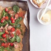 Nopeasti sekoitettava taikina, mehevä smetana-lohitäyte ja komeat kananmunakoristelut ovat suolaisen piirakan valttikortit.