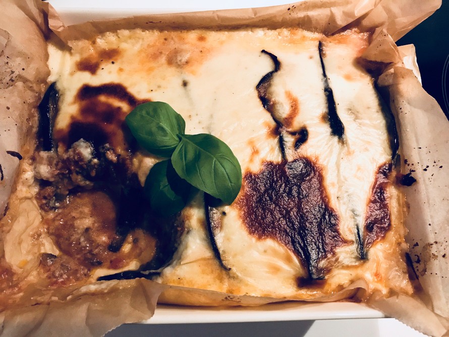 4. Lado uunivuokaan vuorotellen paahdettuja munakoisoviipaleita ja jauhelihakastiketta. Kaada päälle valkokastike.