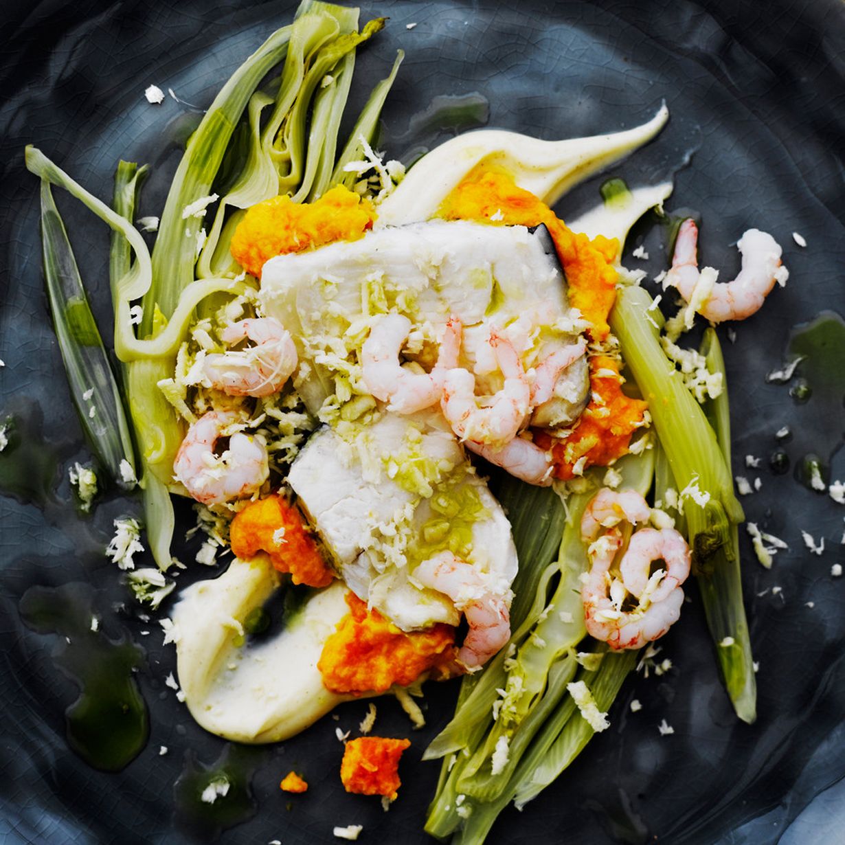 - Kokoa annokset. Asettele lisukkeet eli fenkolit (ohje alla), voimajoneesi (ohje alla) ja porkkanapyree (ohje alla) lautasille. Nosta päälle höyrytetty kala ja katkaravut. Viimeistele annos piparjuuriraasteella ja nosta tarjolle. Halutessasi voit silputa annoksen pintaan myös reilusti tuoretta tilliä.