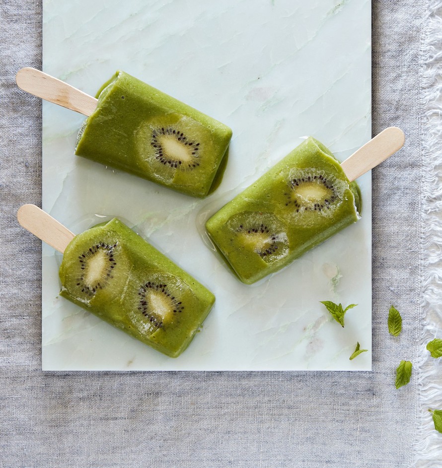 - Kuori ja siivuta kiivit. Aseta kiivisiivut jäätelömuottien reunoille. Kaada smoothie muotteihin. Jäädytä vähintään neljä tuntia tai yön yli.